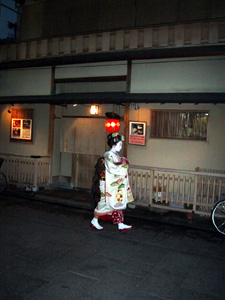 After this, I headed back to the city and across to the east to the temple of Eikan-do. The problem with this temple was that you had to remove your shoes to wander around the buildings and, because of the public holiday, they had run out of slippers. Paddling about on the wooden floors, even with the increase in temperature, was extremely cold on the old tootsies. Eikan-do also featured a Buddha looking over his shoulder, apparently because he had looked over his shoulder at one of the temple's priests and told him to stop dawdling. That evening, I headed to a Geisha spotting location and waited to photo a Geisha or Maiko - not sure which I got... After returning to the guesthouse, I decided to go to a near-by sento (public bath like an onsen). It was recommended in the LP and so I decided it might be nice to see. It featured a sauna, cold bath, herbal bath, wooden bath, normal bath and, unfortunately for me as it was the first one I got into, an electric bath. Avoid electric baths like the plague. They hurt. They hurt lots.