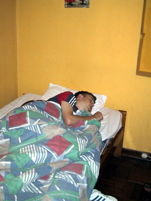 Having learnt the lesson from the last time, we took taxis to the Hostel from the bus station. We arrived and once we had managed to get the door opened we bundled in. There was some confusion about where our rooms were (the Peruvians opting for the American system of describing the ground floor as the first floor) and in the ensuing confusion, we got yelled at for making too much noise. We later found out that the hostel had almost no sound proofing and I guess it would have been annoying to have been woken at that hour of the day. Jamal and I went straight to bed, but unfortunately James and Chris went up to the 3rd floor to see the girls and while not making large amounts of noise, were completely audible even in our room downstairs! Inevitably, they had a second complaint about noise just as they were about to go to bed and so, making their apologies, they skulked down to their room.