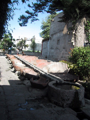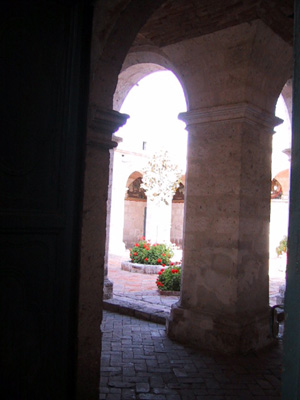 Undeterred, we continued up to the convent. The convent had been an isolated city within Arequipa for hundreds of years until 30 years ago. About 450 nuns and their servants lived within the grounds until the earthquake of around 1960 when the entire compound was extensively damaged. The nuns were forced to sell the majority of it and, although they remain in a small sub-section, the remainder has been restored and opened to the public.