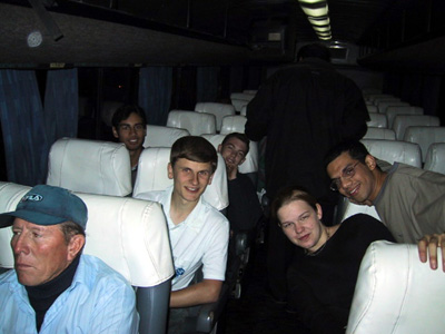 The bus left bang on time, for a change, but, given that the previous warning had been utter rubbish, we hadn't bothered too much about wrapping up beforehand. Mistake. As we climbed higher and it got later, the temperature in the bus plummeted. Zoe and I huddled for warmth; Chris and James claimed that what they were up to was also to provide them with heat; and Lyndsey had opted to hide her feet in her rucksack to try to keep them warm. We were all very cold and very tired when we arrived into Puno.