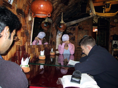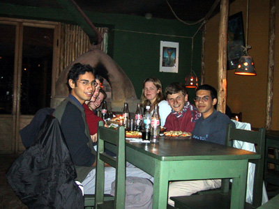 Suitably refreshed, we headed out for dinner in Puno. We found a very pleasant restaurant in the centre of town with a big pizza oven spewing heat into the restaurant. Sadly, this heat did not extend to the rice or vegetables, but even so, I was hungry enough that I also ordered pudding! During dinner we had a fantastic discussion about what I had seen during the trip to Sillustani. Zoe, not realizing that the spiral was carved into the stone and not a piece of copper wire, declared that the spiral had caused the weird effects seen on the compass. After being derided for several minutes over this, we then discovered that the reason Lyndsey kept asking questions about how the compass had been held was because she couldn't see how the guide had been balancing the compasses. Classic. Another super twist in the conversation came when Zoe explained that there were always loads of Americans in Ironbridge and Lyndsey asked what they were visiting. The joy of traveling with blonds is that they not only look good, but provide endless hours of amusement! After dinner, we headed back to our Hostel for some well deserved rest. I popped out for an hour to catch up on my e-mails and then joined the rest of the crew in going to bed.