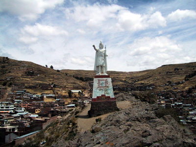 The lack of hot water caused some disgruntlement within the group during the morning. Breakfast was a slightly tense affair and, given that I don't indulge in this meal, I decided to go for a wander up to the plaza to see the cathedral. Having seen it, I noticed a statue up on a hill and decided that the view from up there would be quite good. I headed up the nearest hill and, spotting a little pathway off to the right, followed it uphill and, eventually, up to the statue. The views were indeed as good as expected and so, following a couple of photos, I headed back down to the café. The effects of high altitude were also beginning to kick in. Lyndsey in particular was dying off and hankered after her bed.