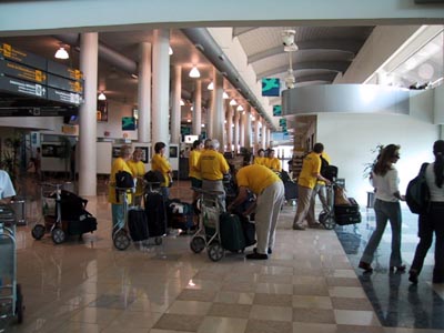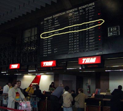 We arrived in Sao Paulo about an hour late, which was a slight problem as the transfer time to our connecting flight had already been quite tight. We got through immigration without too much bother but then came a bit unstuck at baggage collection. Our bags weren’t forthcoming. After a long wait, we eventually managed to collect our bags and then had to start queuing for customs. Once through that, it was a quick dash through the airport (including getting everything and everyone from ground floor to the first floor) to the domestic check-in desks. Here, confusion reigned supreme. Those in the chariots (wheelchairs) got taken through a different route, but had left their luggage behind. We therefore had quite a few more bags than we had passengers, but somehow we got everything through. We were just completing checking in at 9am and had 10 minutes to get to the gate before our flight was due to depart. We got through security with minimum fuss and raced along to our departure gate. We got there at about the time that the flight was supposed to leave but then realised that we needed to take a bus to the actual plane itself! We were bundled into a minibus and raced across the airport to the plane that was to take us to Londrina.