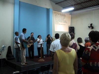 After dinner that evening, the bus came to pick us up again to take us to church in Londrina. We had been asked to sing at the service and I also had a recorder solo to do which went wonderfully quivery due to my breathing not being as calm as it had been in rehearsal! Unfortunately, it started to rain heavily as we headed into Londrina. This impacted on numbers at the church that evening although it was still almost full. The service was lively - a time of worship, some prayer and then a sermon by David who we had met earlier.
