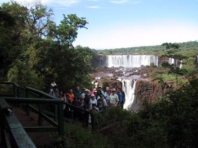 Bright and early next morning, we were back on the bus and on our way to the waterfalls at Foz. It was a nippy morning, and I soon discovered that choosing the seat next to the missing window (to afford a better view) was something of a mistake as by the time we reached the start of the walk, my body temperature had dropped to somewhere near 0’C. It was worth it however. Separating Argentina and Brazil, the falls stretch 2.5kms and were truly a spectacular site (perhaps more so than Niagera, in my humble opinion…).