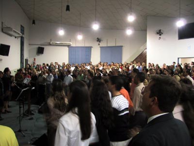 After lunch, we continued on our journey. We were headed for an intermediate destination called Maringa. We were hoping to catch a church service there. Thankfully, we arrived just in time. We managed to get the last remaining seats in the building, up near the front. I’m told there were about 650 people in the building that evening, and that was the third service of the evening! The worship was, as per standard, lively, loud and heart-felt. The preacher delivered an animated and enthusiastic sermon (which Sylv translated for me) and then we shared communion. Yet another fantastic service and another great example of Christianity thriving in Brazil.