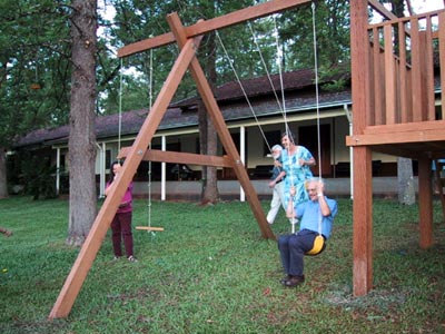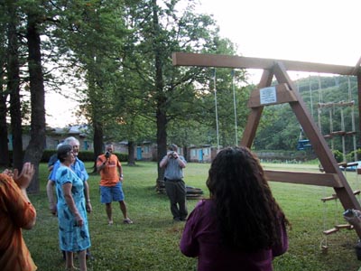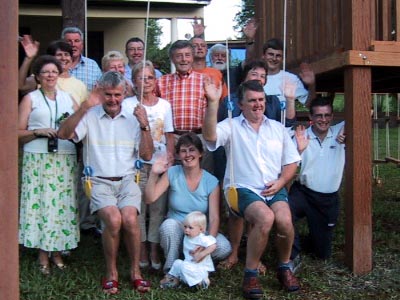 David Roof, who had kindly agreed to put the roof on the playground, had joined us for dinner with his family. Craftily, during dinner, Walter and Bill had popped out and mounted a plaque on the playground saying that it had been built to commemorate 30 years of service by Tommy and Margaret in Brazil. After dinner, we all headed out to the playground for an informal dedication ceremony. I don’t think Tommy and Margaret had really expected the plaque at all, and so were both surprised and happy that it had been erected. We then prayed for the playground and all those who would use it in the future (all the while being eaten alive by a number of biting insects that were clearly also enjoying dinner before sun set!). Group photos were taken before we had that evening’s devotions and headed to our rooms to try to begin sorting the stuff we were taking home the next day.