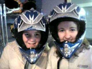 Elaine and Nic about to hold up a petrol station (or go on the ski-do's)