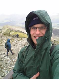 At the top of Snowdon (not actually that cold or wet, but was keeping the warmth in)