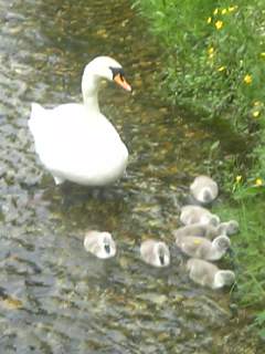 Cygnet walking in the stream outside the office